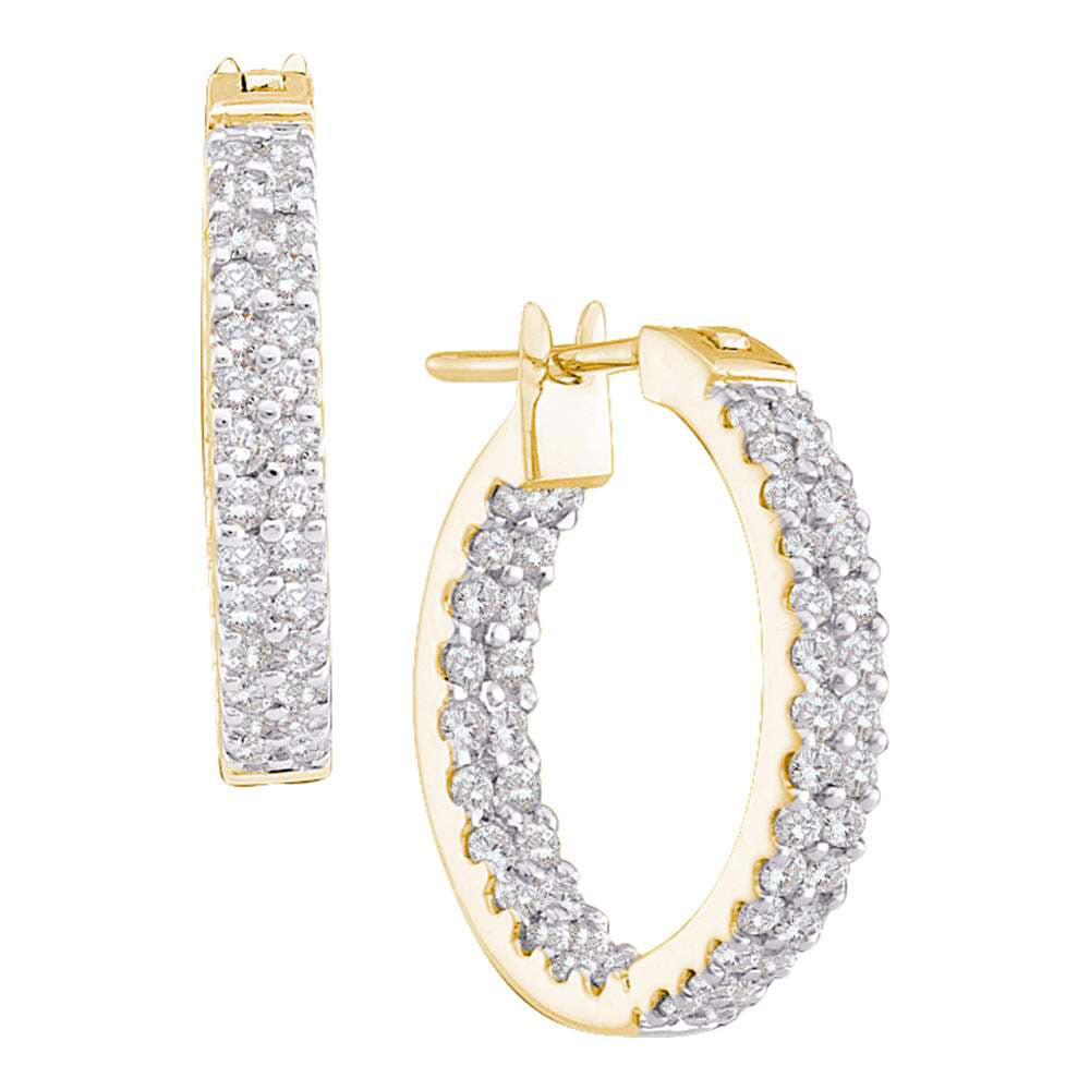 14kt Yellow Gold Womens Round Diamond Inside Outside Double Row Hoop Earrings 1 Cttw
