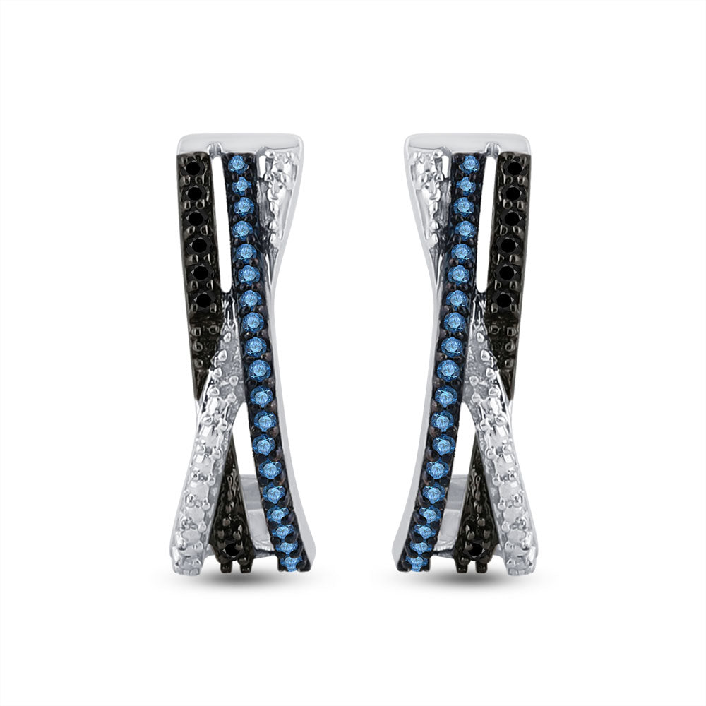 Sterling Silver Womens Round Blue Color Enhanced Diamond Half J Hoop Earrings 1/5 Cttw