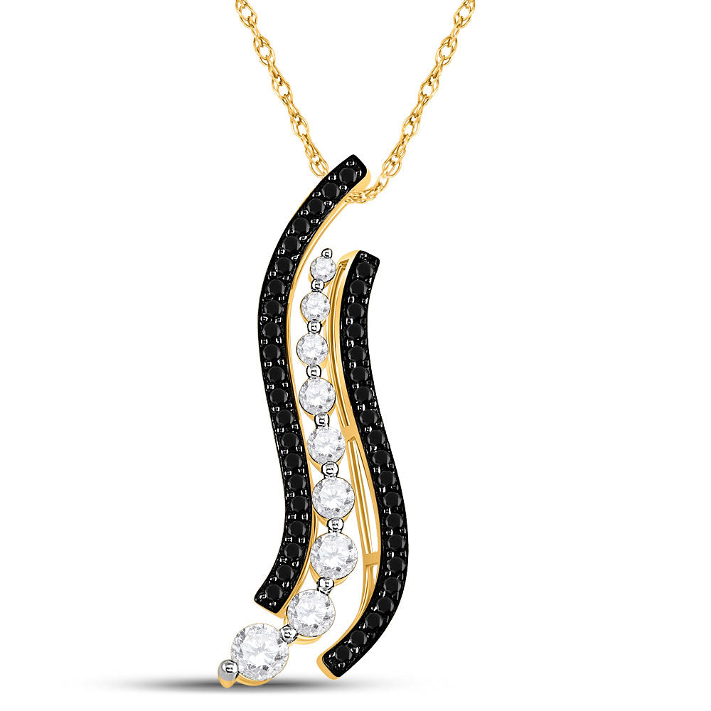 10kt Yellow Gold Womens Round Black Color Enhanced Diamond Graduated Journey Pendant 1 Cttw
