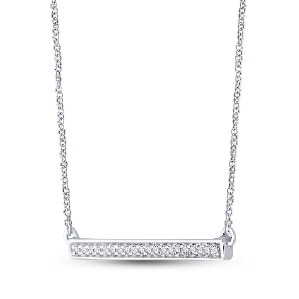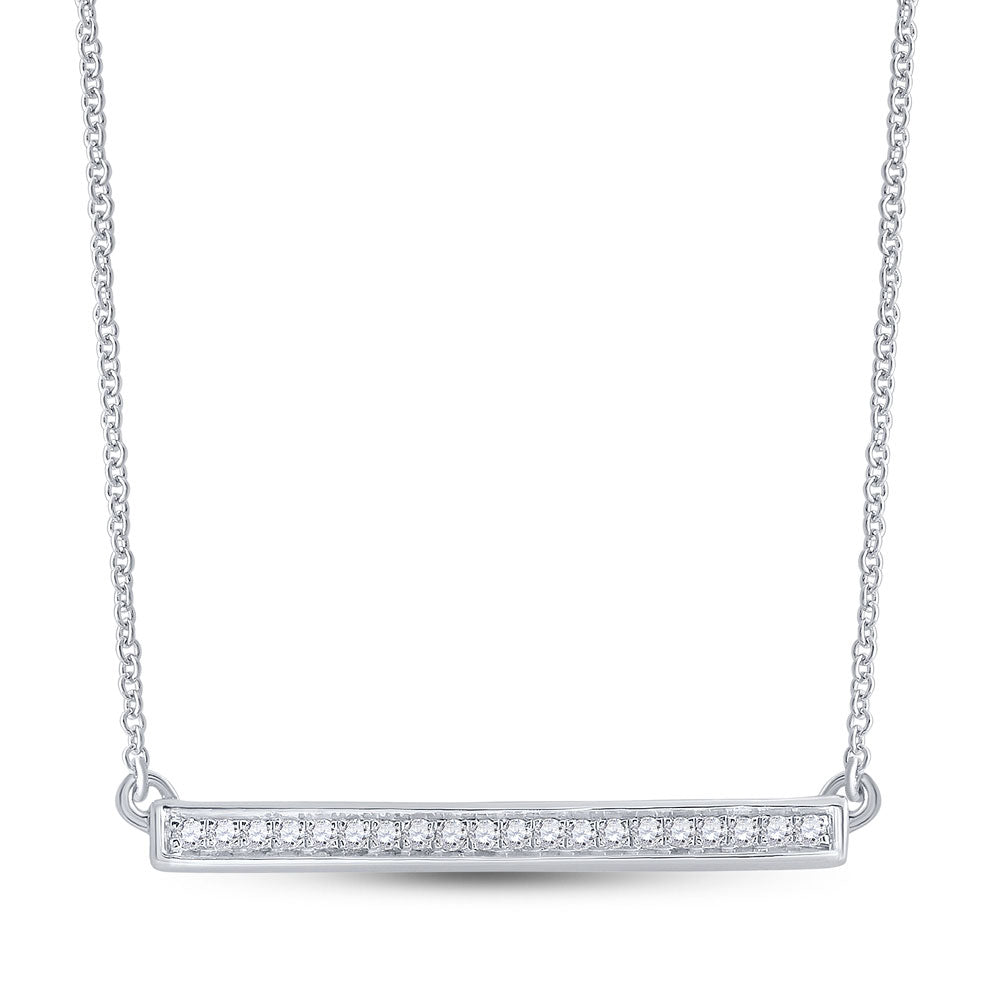 10kt White Gold Womens Round Diamond Bar Pendant Chain Necklace 1/10 Cttw