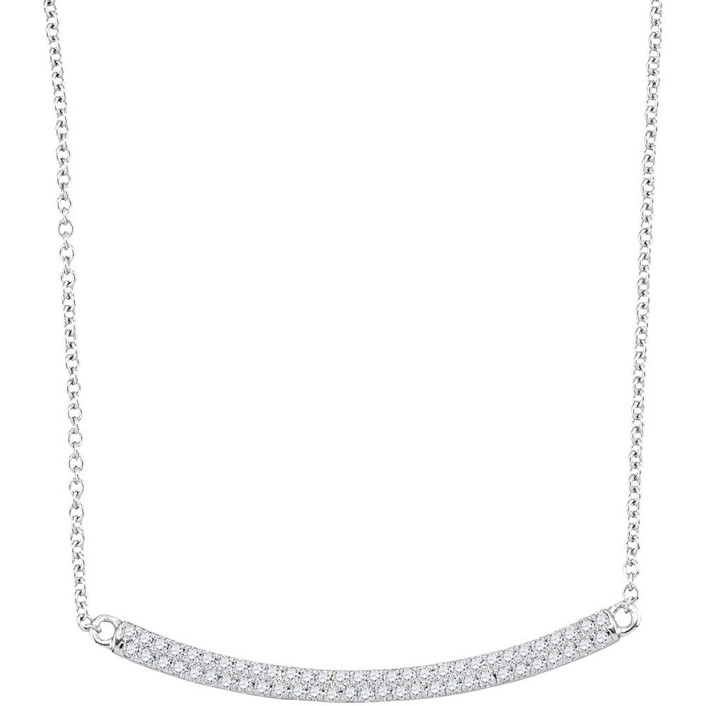 10kt White Gold Womens Round Diamond Curved Horiontal Bar Pendant Necklace 1/3 Cttw