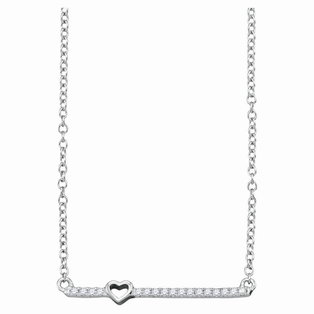 10kt White Gold Womens Round Diamond Heart Bar Necklace 1/10 Cttw
