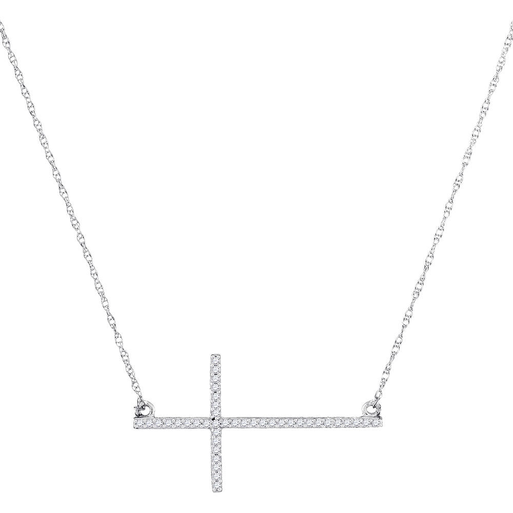 10kt White Gold Womens Round Diamond Horizontal Cross Pendant Necklace 1/8 Cttw