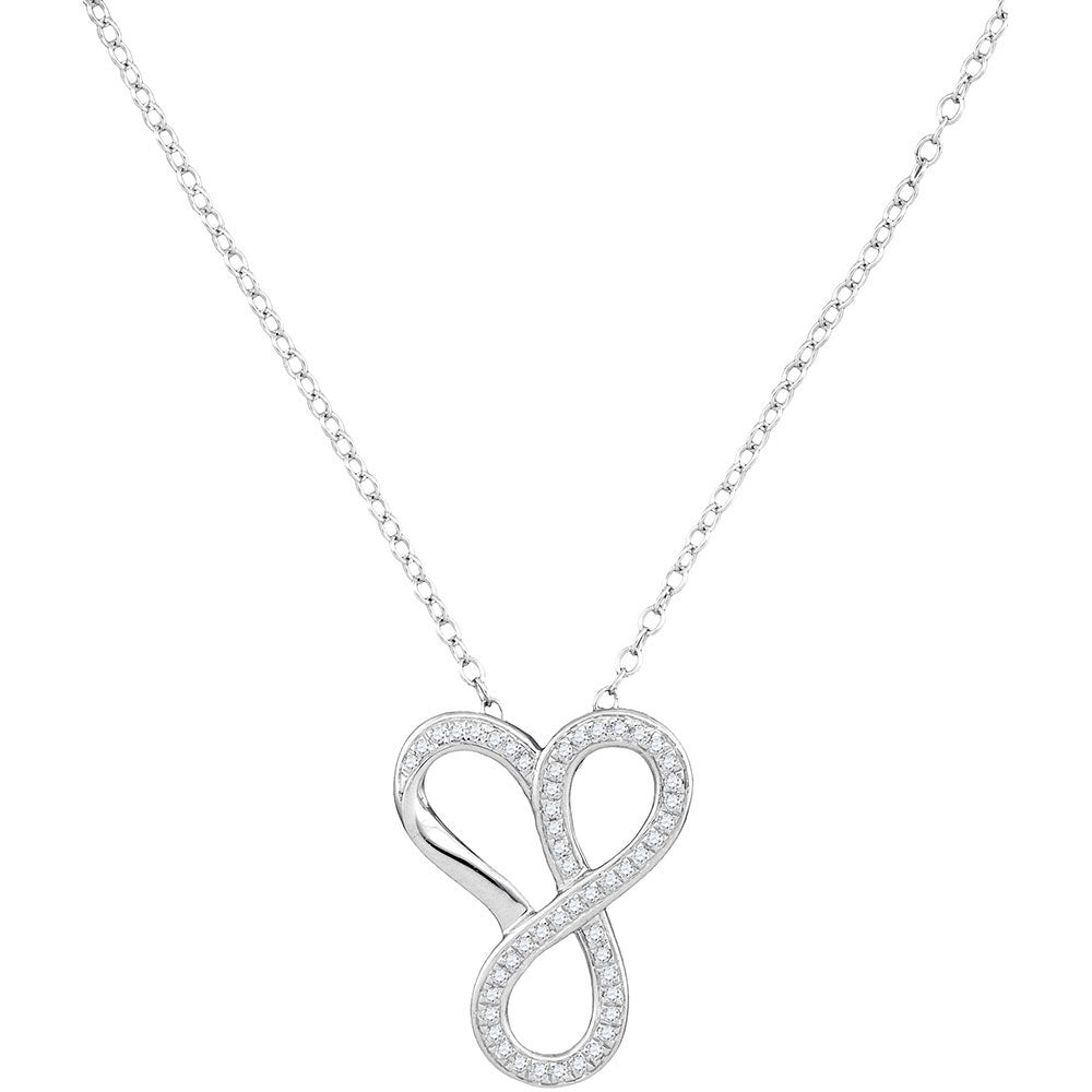 10kt White Gold Womens Round Diamond Infinity Heart Pendant Necklace 1/6 Cttw