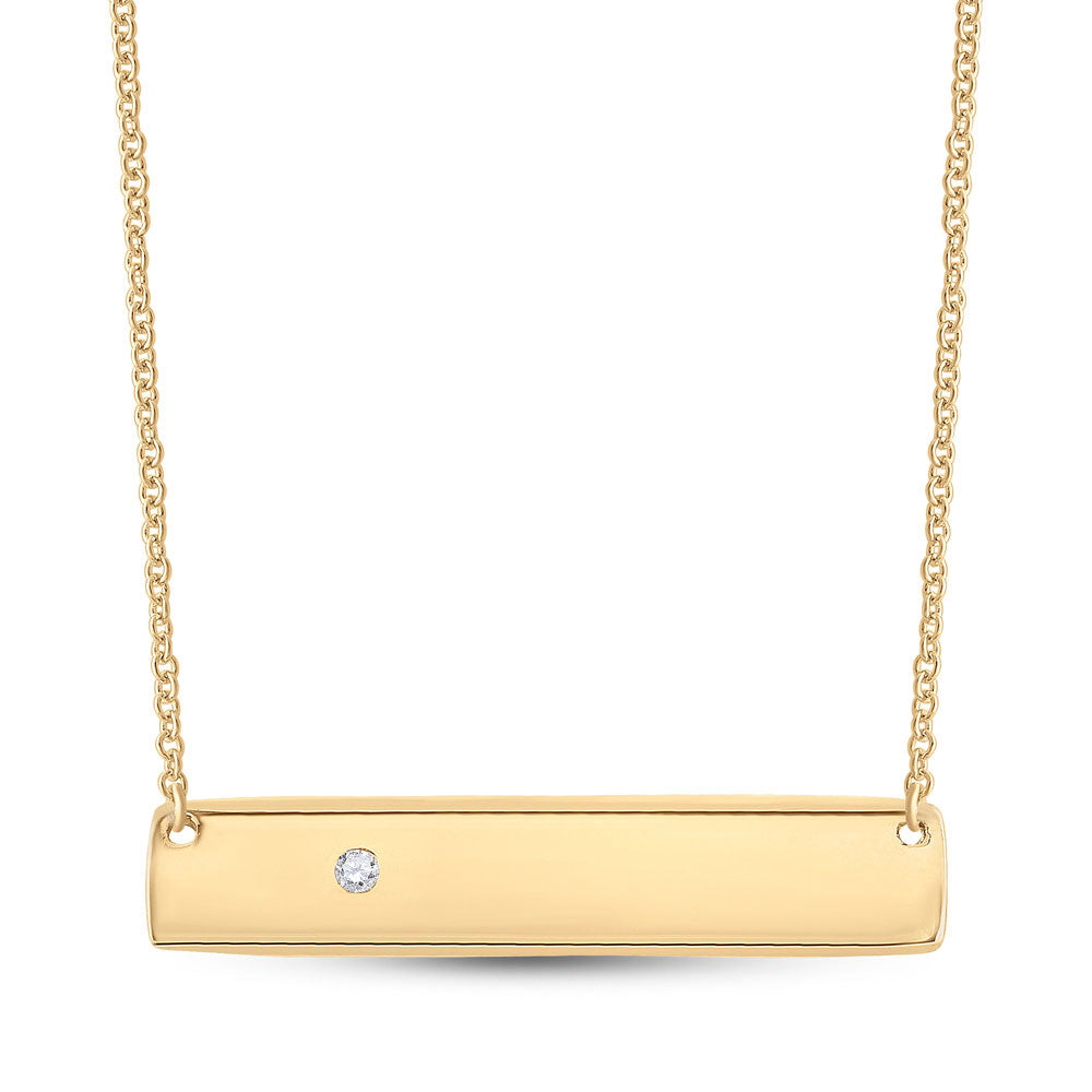 10kt Yellow Gold Womens Round Diamond Rectangle Bar Necklace .02 Cttw