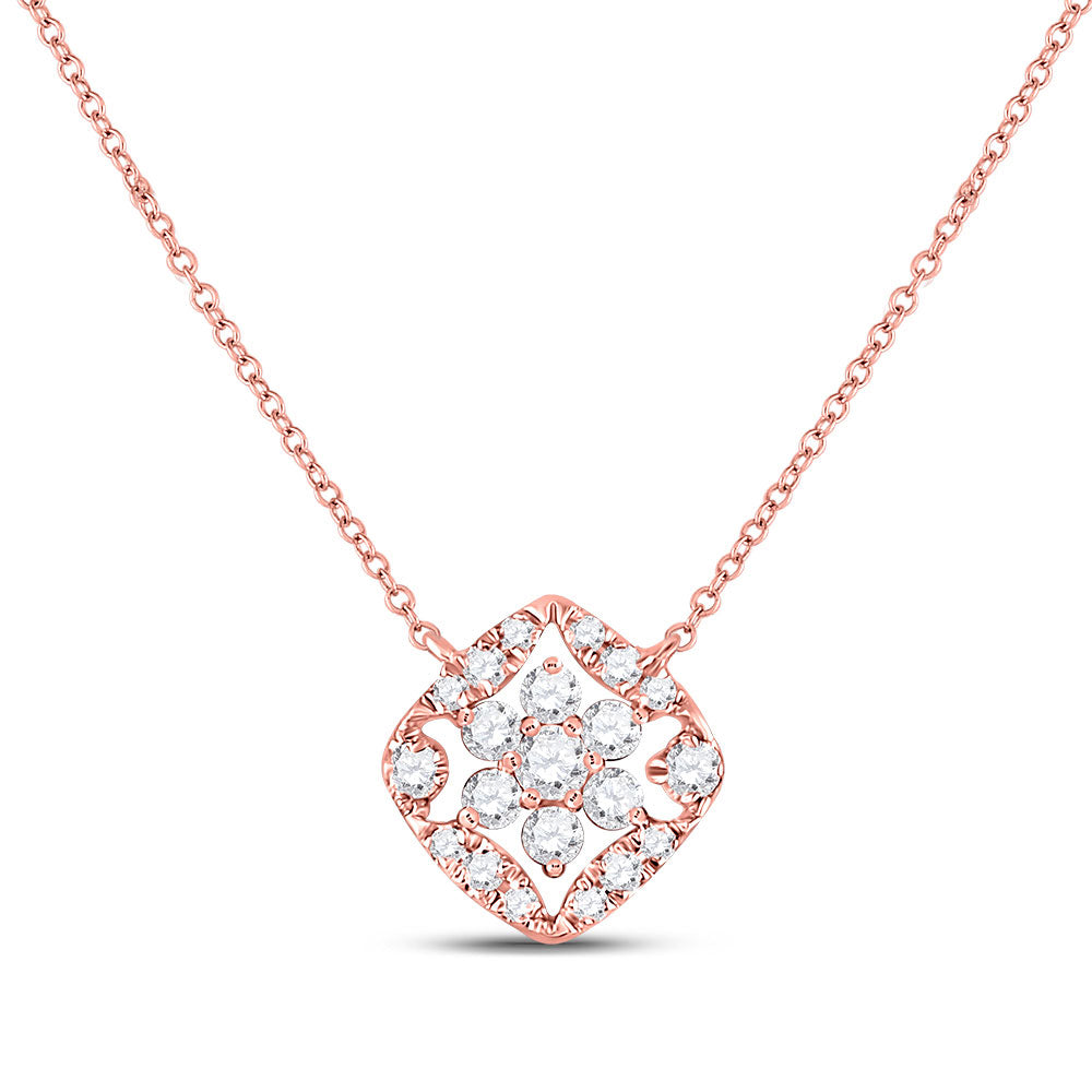14kt Rose Gold Womens Round Diamond Floral Cluster Necklace 1/3 Cttw