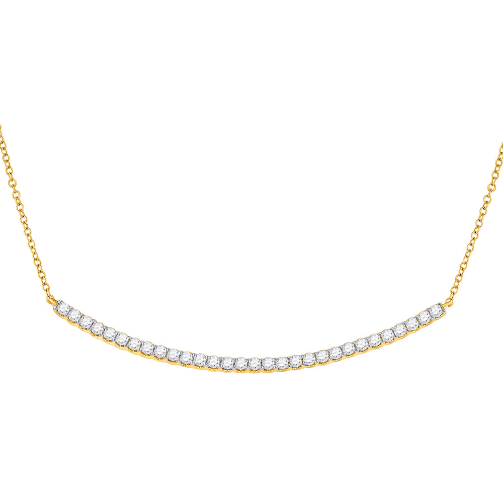 14kt Yellow Gold Womens Round Diamond Curved Bar Necklace 1 Cttw