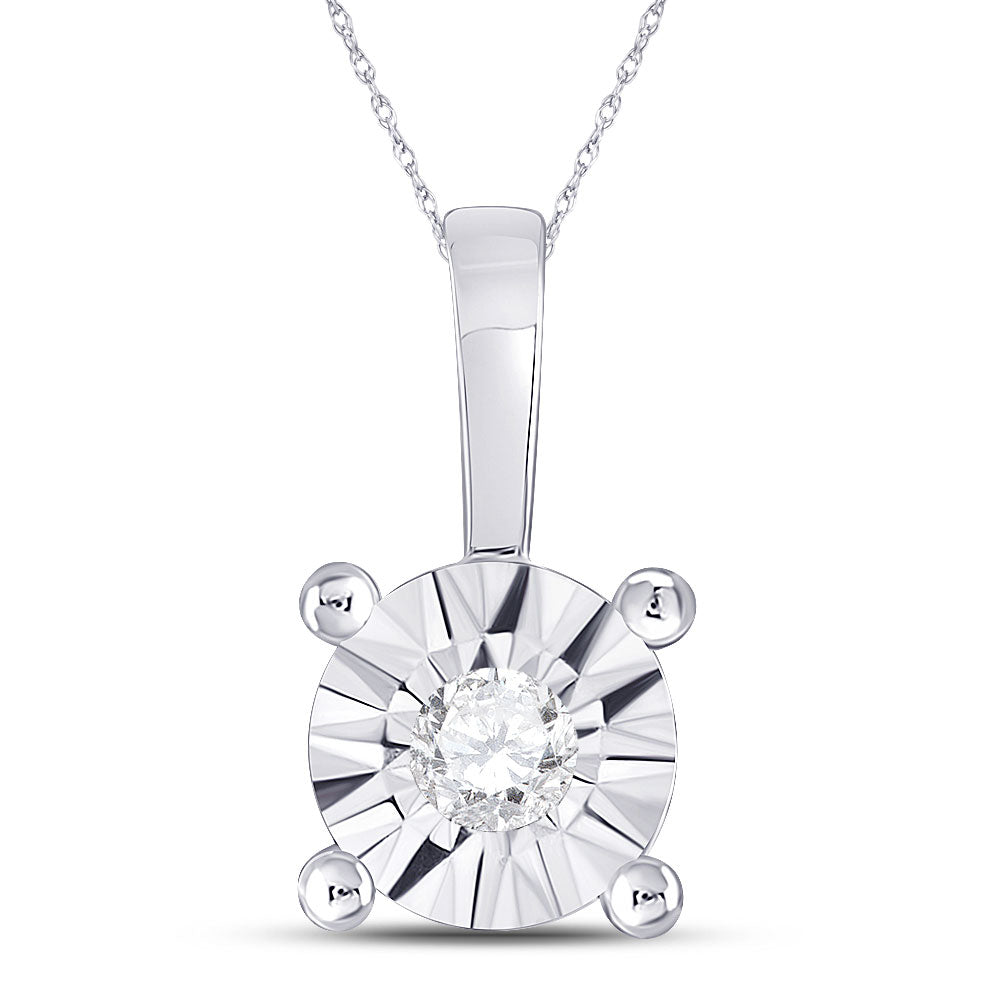 10kt White Gold Womens Round Diamond Illusion-set Solitaire Pendant 1/10 Cttw