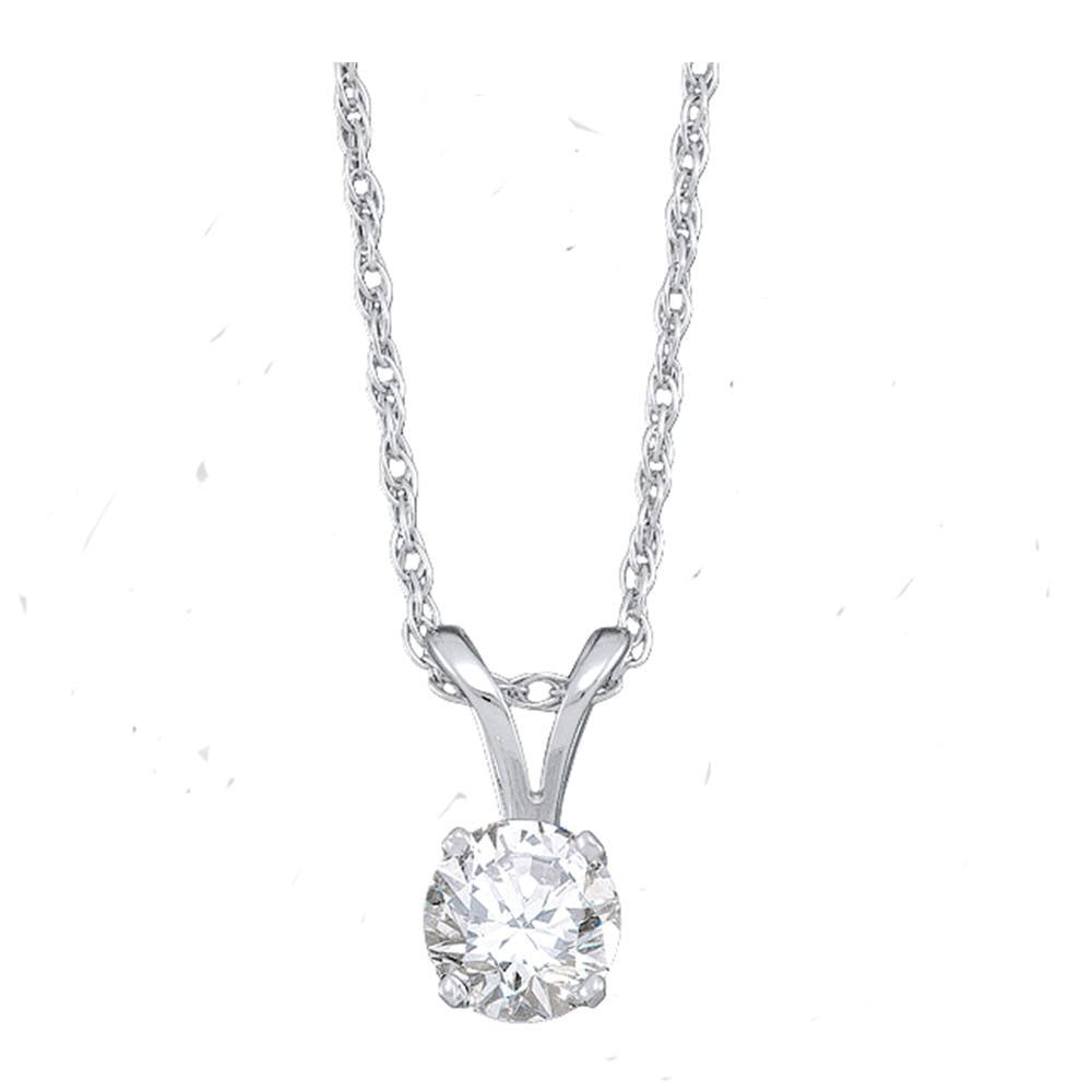 14kt White Gold Womens Round Diamond Solitaire Pendant 1 Cttw