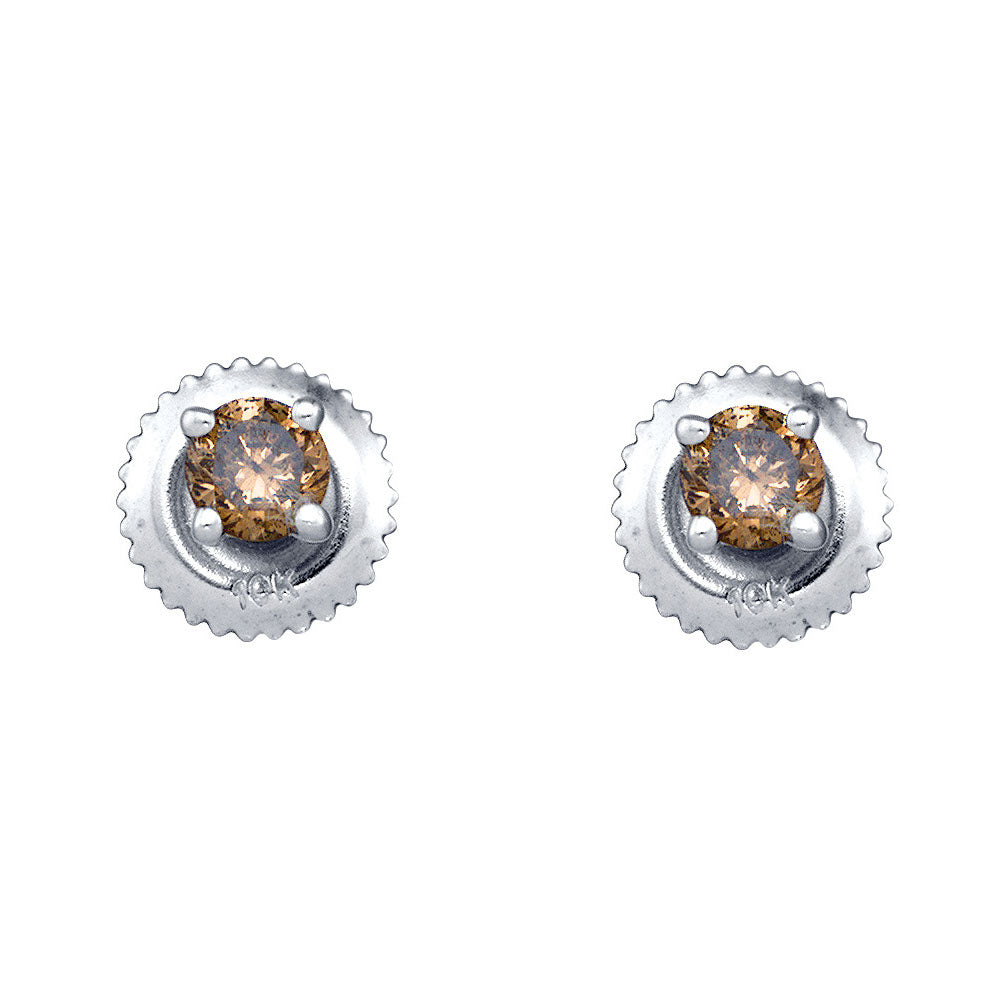 10kt White Gold Womens Round Brown Diamond Solitaire Earrings 1/4 Cttw