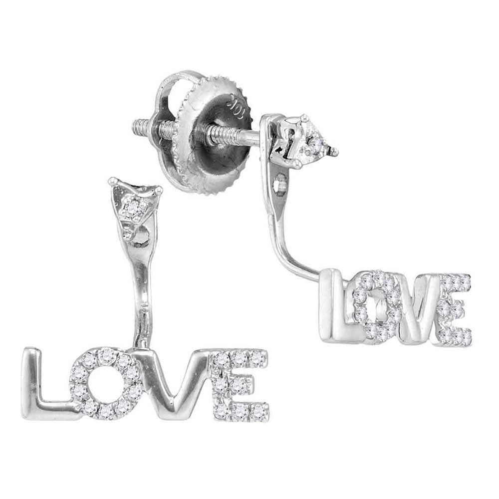 10kt White Gold Womens Round Diamond Love Stud Jacket Earrings 1/10 Cttw