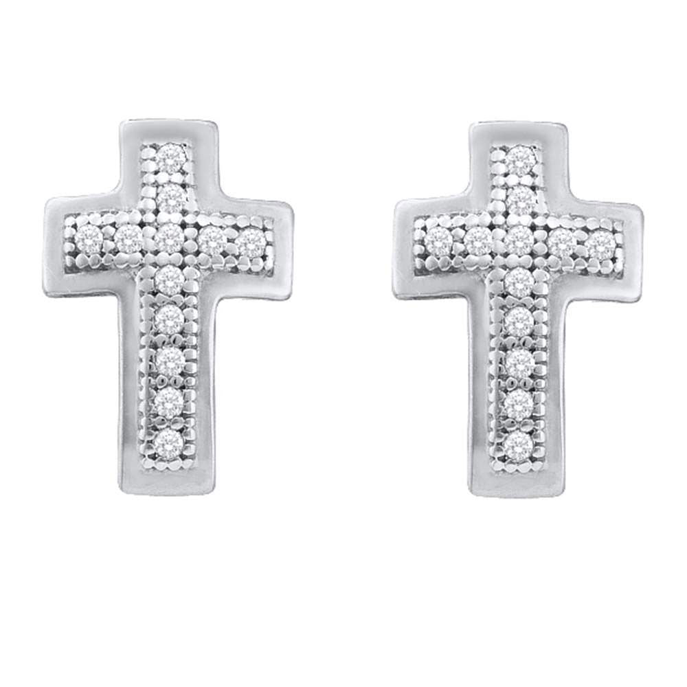 10kt White Gold Womens Round Diamond Small Cross Earrings 1/10 Cttw
