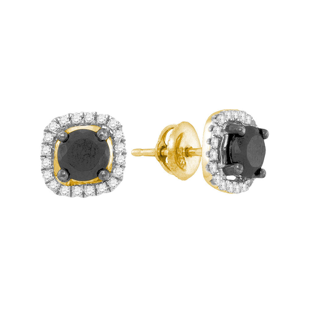 10kt Yellow Gold Womens Round Black Color Enhanced Diamond Solitaire Earrings 1-7/8 Cttw