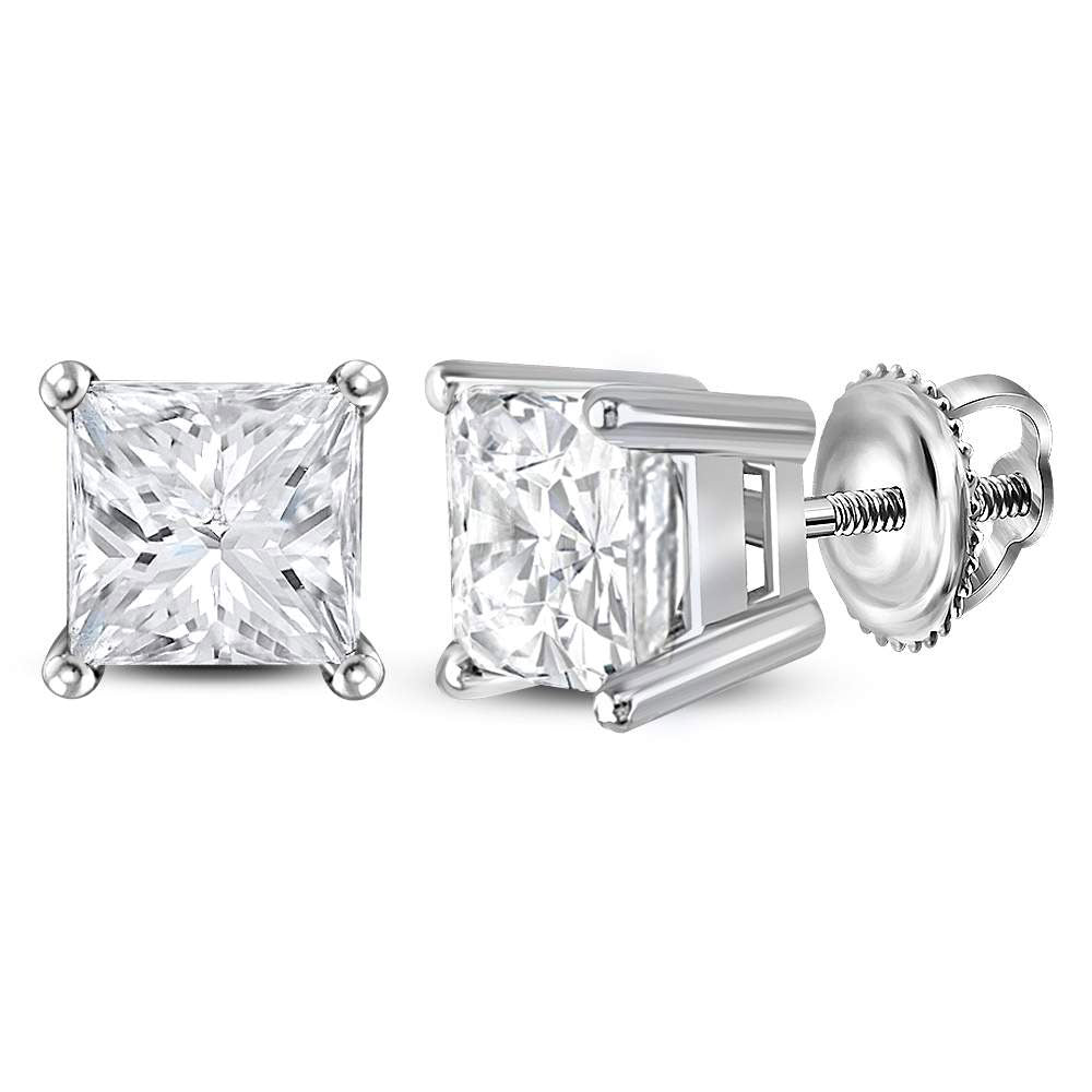 14kt White Gold Womens Princess Diamond Solitaire Earrings 1-1/2 Cttw