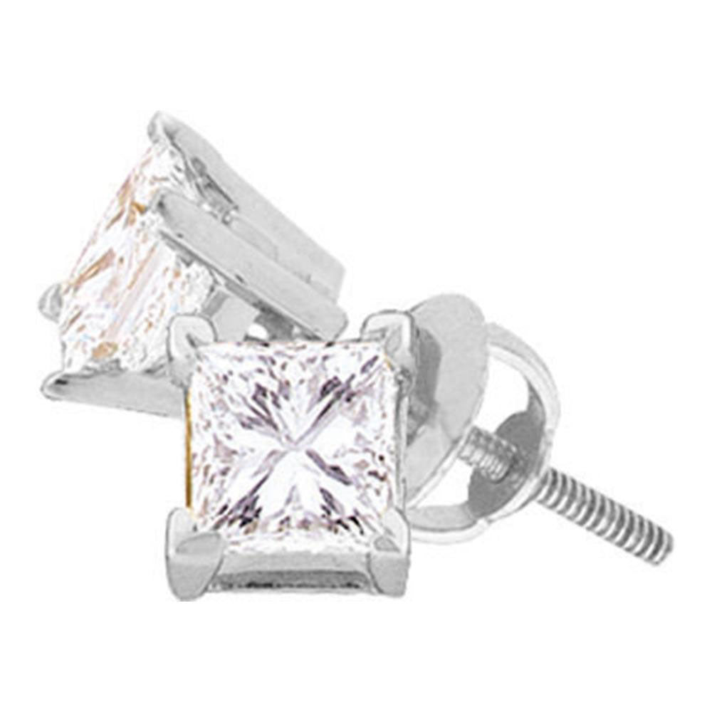14kt White Gold Womens Princess Diamond Solitaire Earrings 1-3/8 Cttw