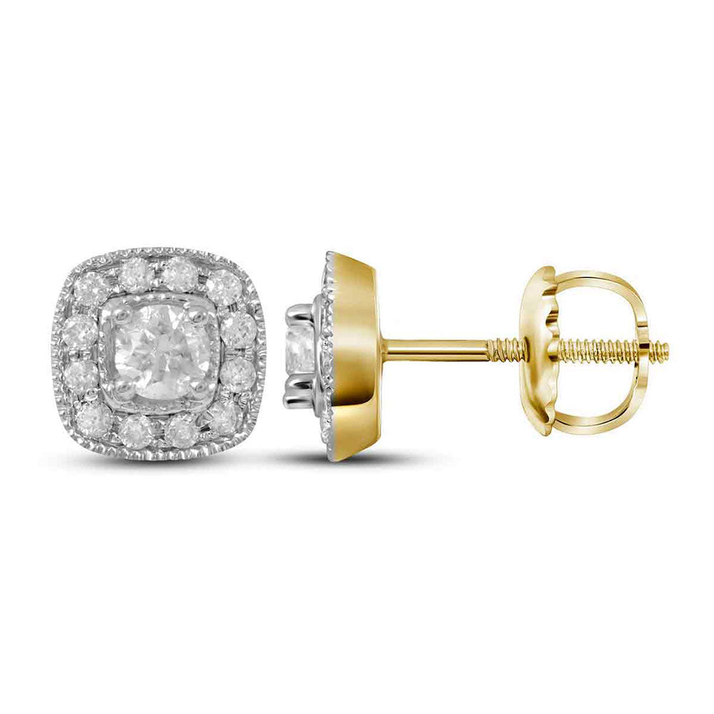 14kt Yellow Gold Womens Round Diamond Solitaire Square Frame Earrings 3/8 Cttw