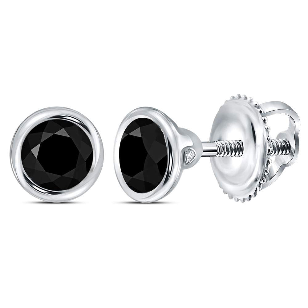 Sterling Silver Womens Round Black Color Enhanced Diamond Solitaire Earrings 1 Cttw