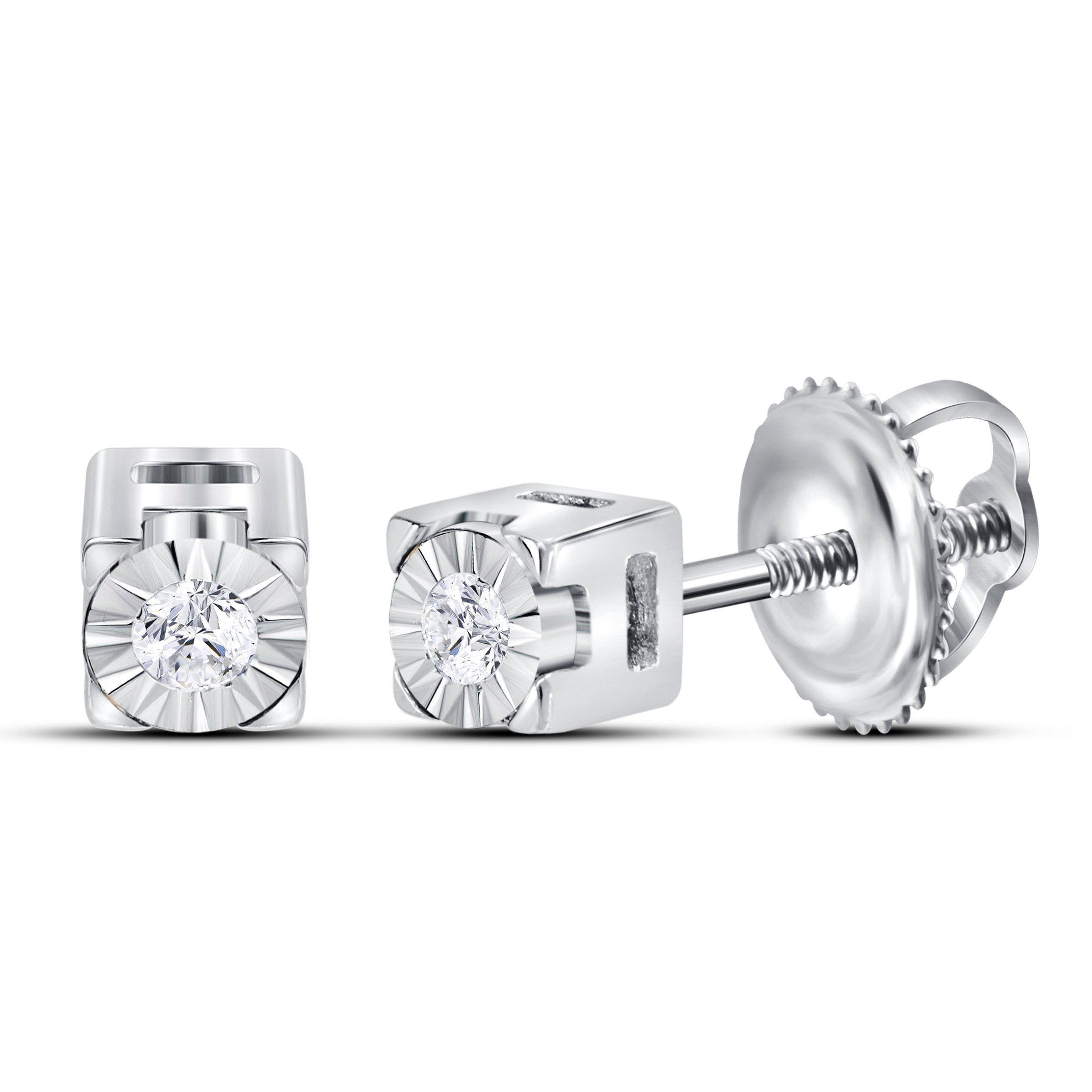 Sterling Silver Womens Round Diamond Solitaire Stud Earrings 1/20 Cttw