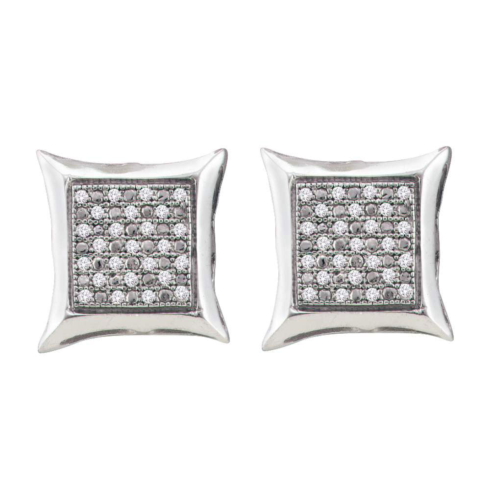 Sterling Silver Womens Round Diamond Square Kite Cluster Earrings 1/6 Cttw