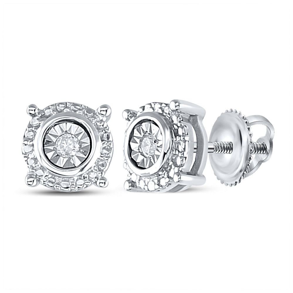 Sterling Silver Womens Round Diamond Stud Earrings 1/20 Cttw