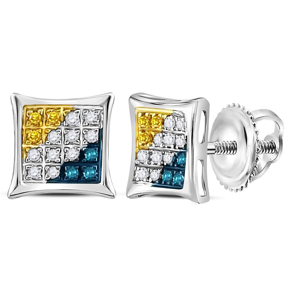 Sterling Silver Womens Round Yellow Color Enhanced Diamond Stud Earrings 1/10 Cttw