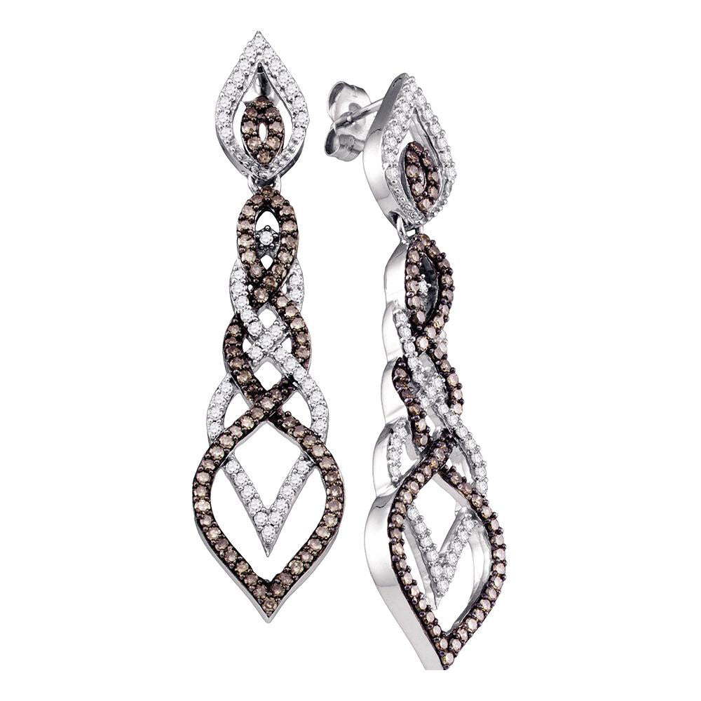 10kt White Gold Womens Brown Diamond Dangle Earrings 1-1/2 Cttw