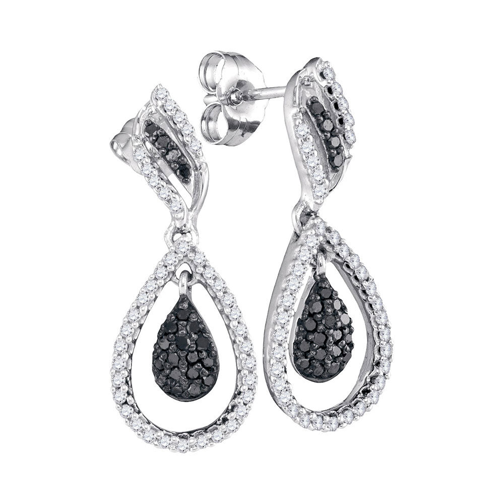 10kt White Gold Womens Round Black Color Enhanced Diamond Dangle Earrings 1/2 Cttw