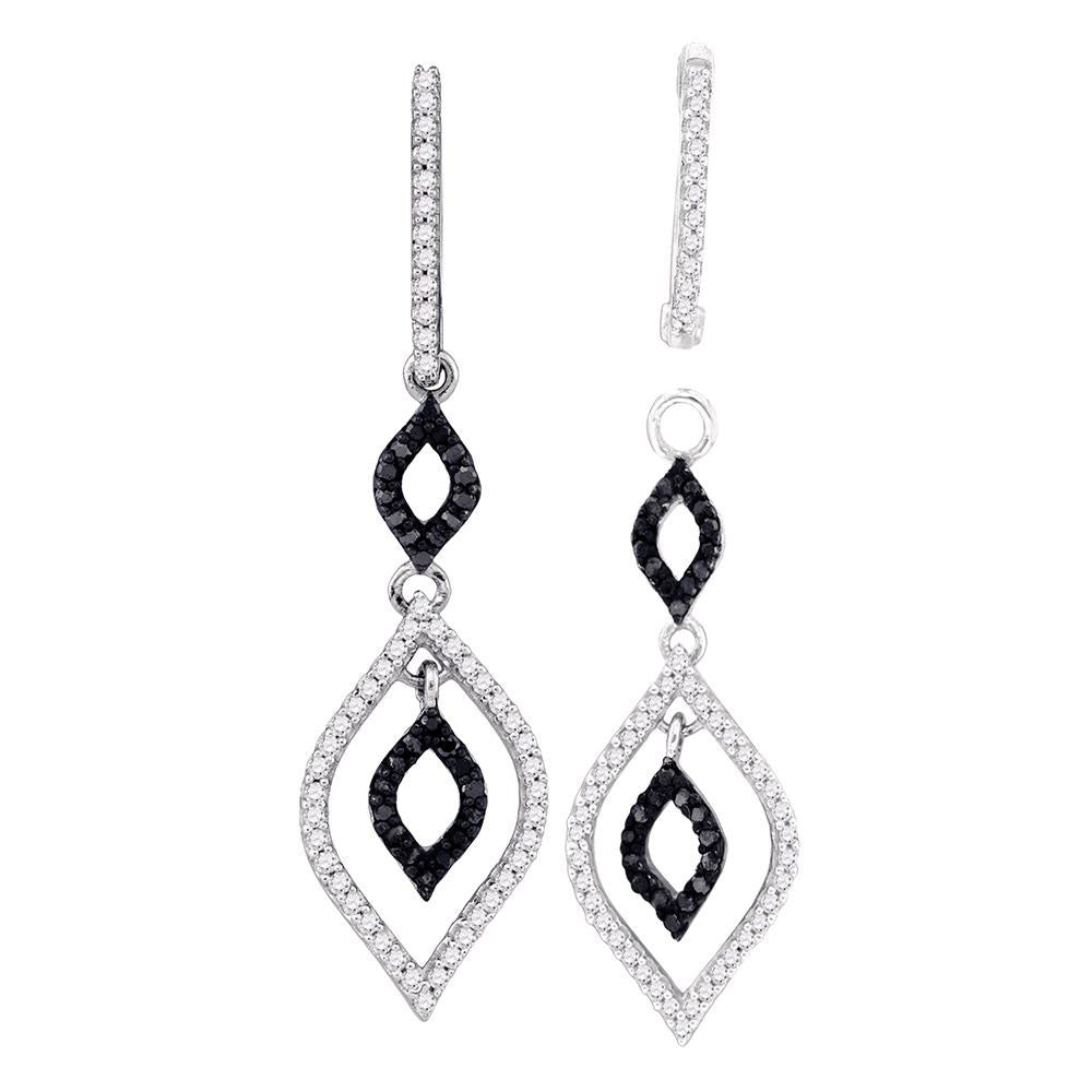 10kt White Gold Womens Round Black Color Enhanced Diamond Oval Dangle Earrings 1/2 Cttw