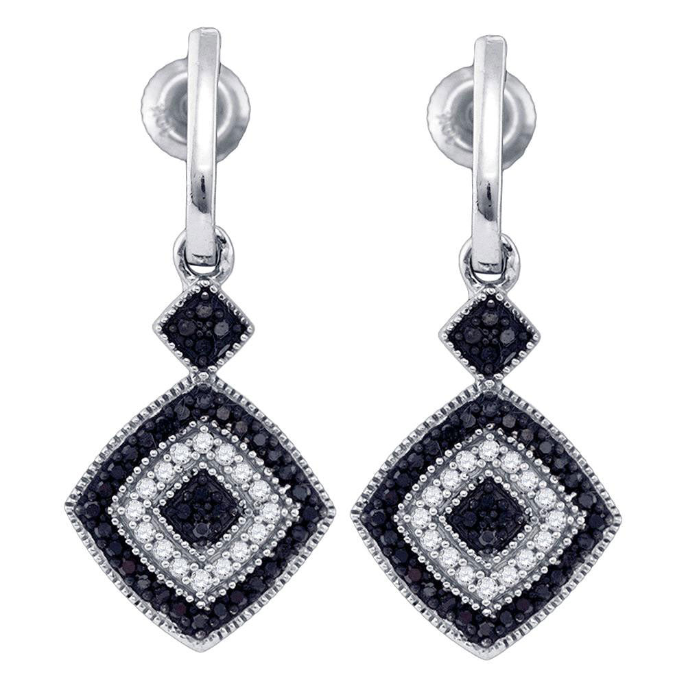 10kt White Gold Womens Round Black Color Enhanced Diamond Square Dangle Earrings 1/3 Cttw