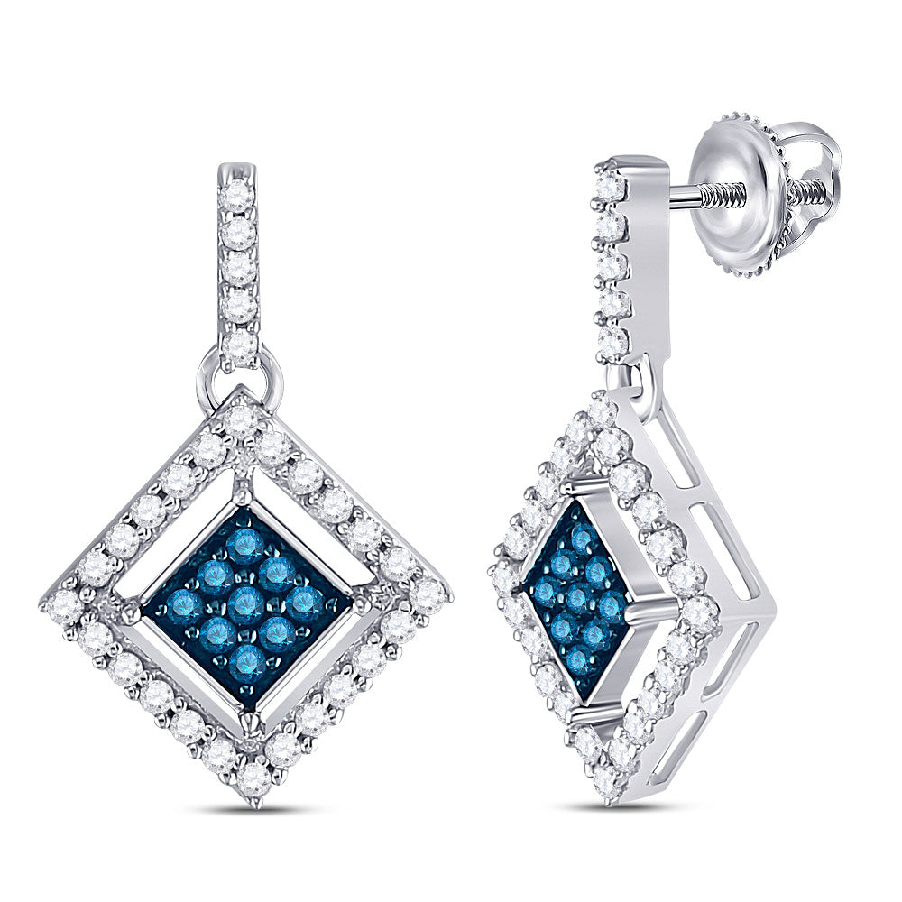 10kt White Gold Womens Round Blue Color Enhanced Diamond Square Dangle Earrings 1/2 Cttw