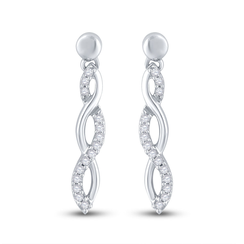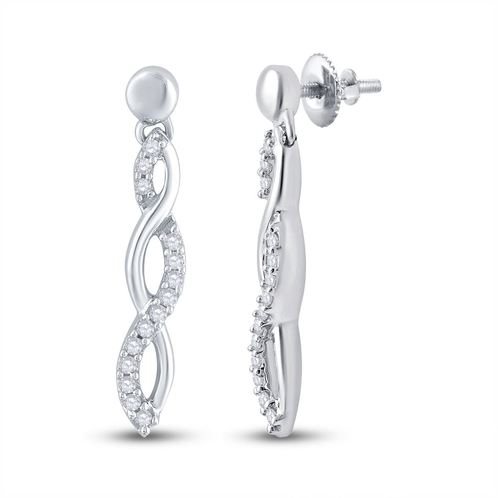 10kt White Gold Womens Round Diamond Dangle Earrings 1/4 Cttw