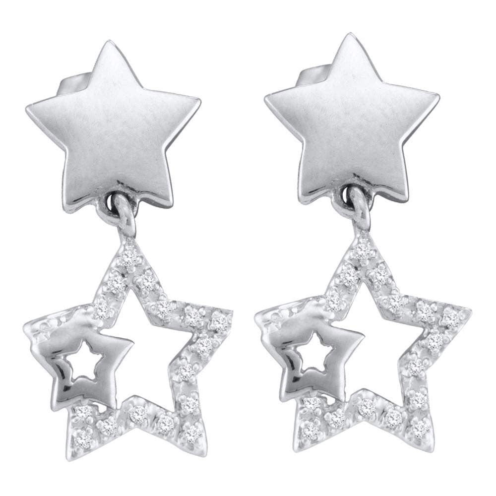 10kt White Gold Womens Round Diamond Star Dangle Earrings 1/10 Cttw