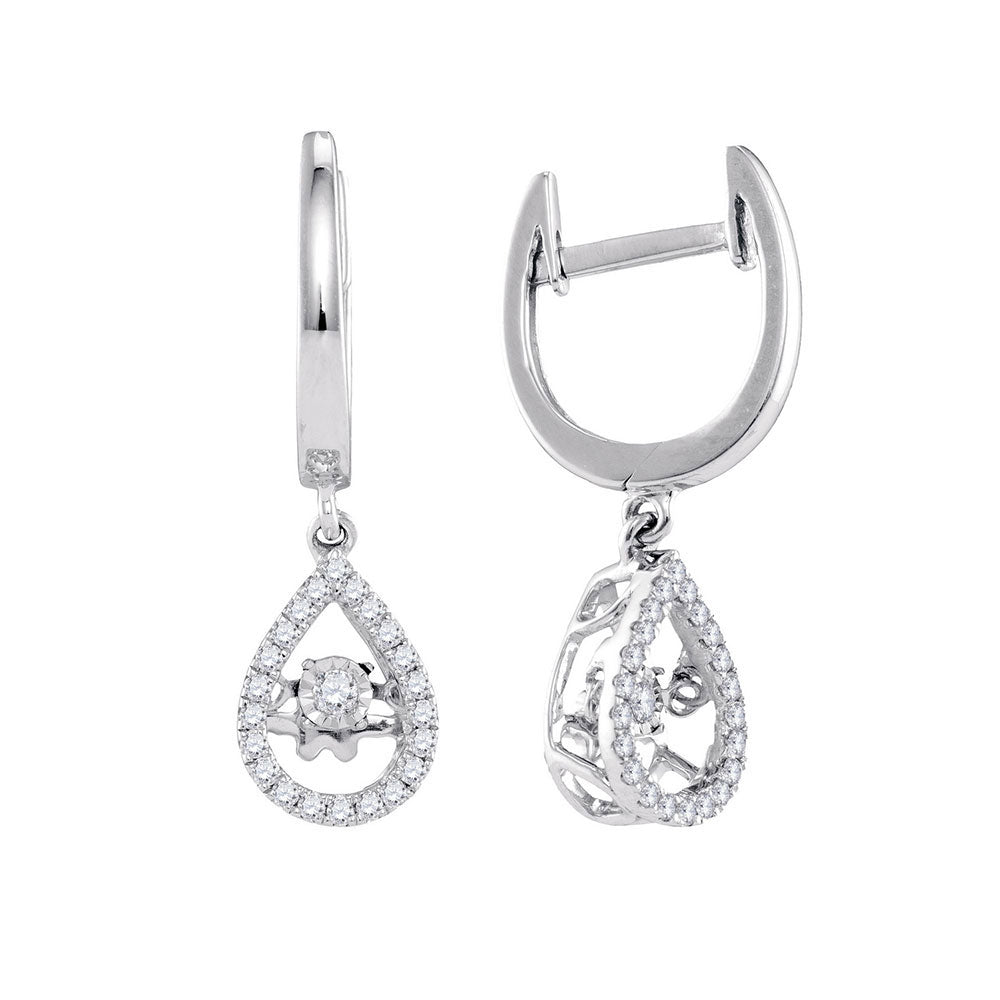 10kt White Gold Womens Round Moving Twinkle Diamond Teardrop Dangle Earrings 1/4 Cttw