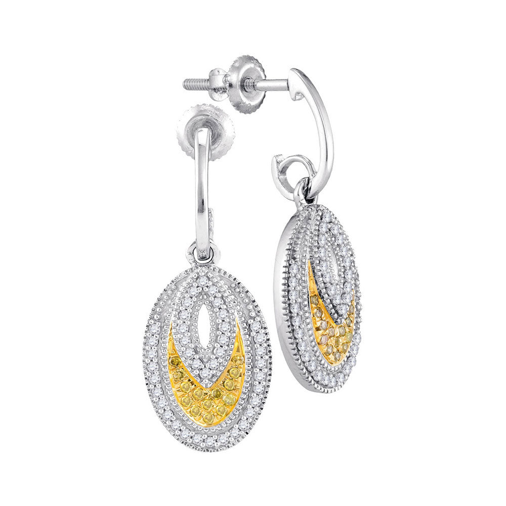 10kt White Gold Womens Round Yellow Color Enhanced Diamond Oval Dangle Earrings 1/3 Cttw