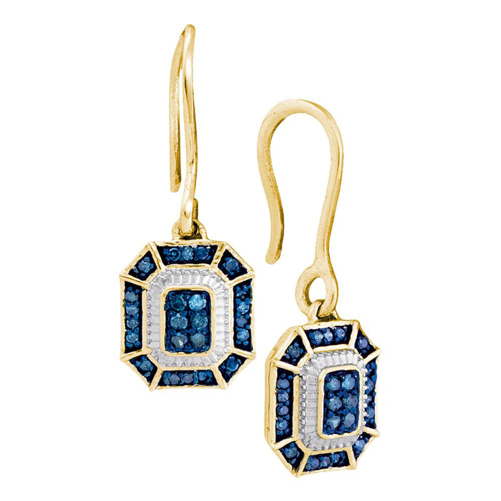 10kt Yellow Gold Womens Round Blue Color Enhanced Diamond Dangle Earrings 1/5 Cttw