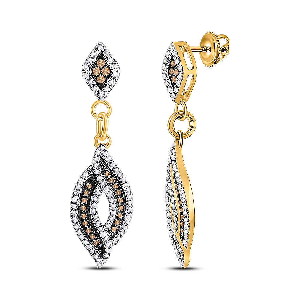 10kt Yellow Gold Womens Round Brown Blue Color Enhanced Diamond Dangle Earrings 1/2 Cttw
