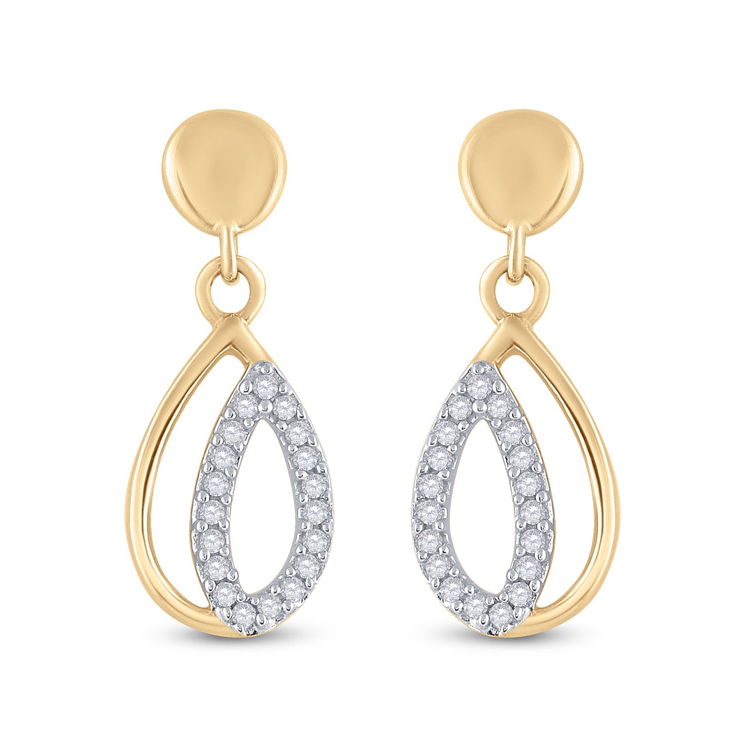 10kt Yellow Gold Womens Round Diamond Dangle Earrings 1/10 Cttw