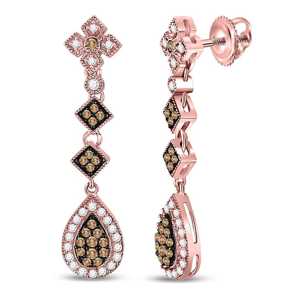 14kt Rose Gold Womens Round Brown Diamond Dangle Earrings 5/8 Cttw