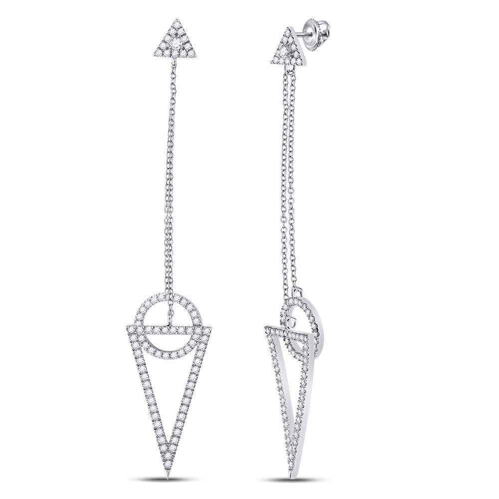 14kt White Gold Womens Round Diamond Circle Triangle Dangle Earrings 3/4 Cttw