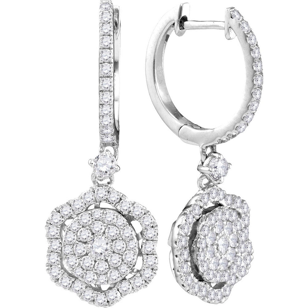 14kt White Gold Womens Round Diamond Hexagon Frame Cluster Dangle Earrings 1 Cttw