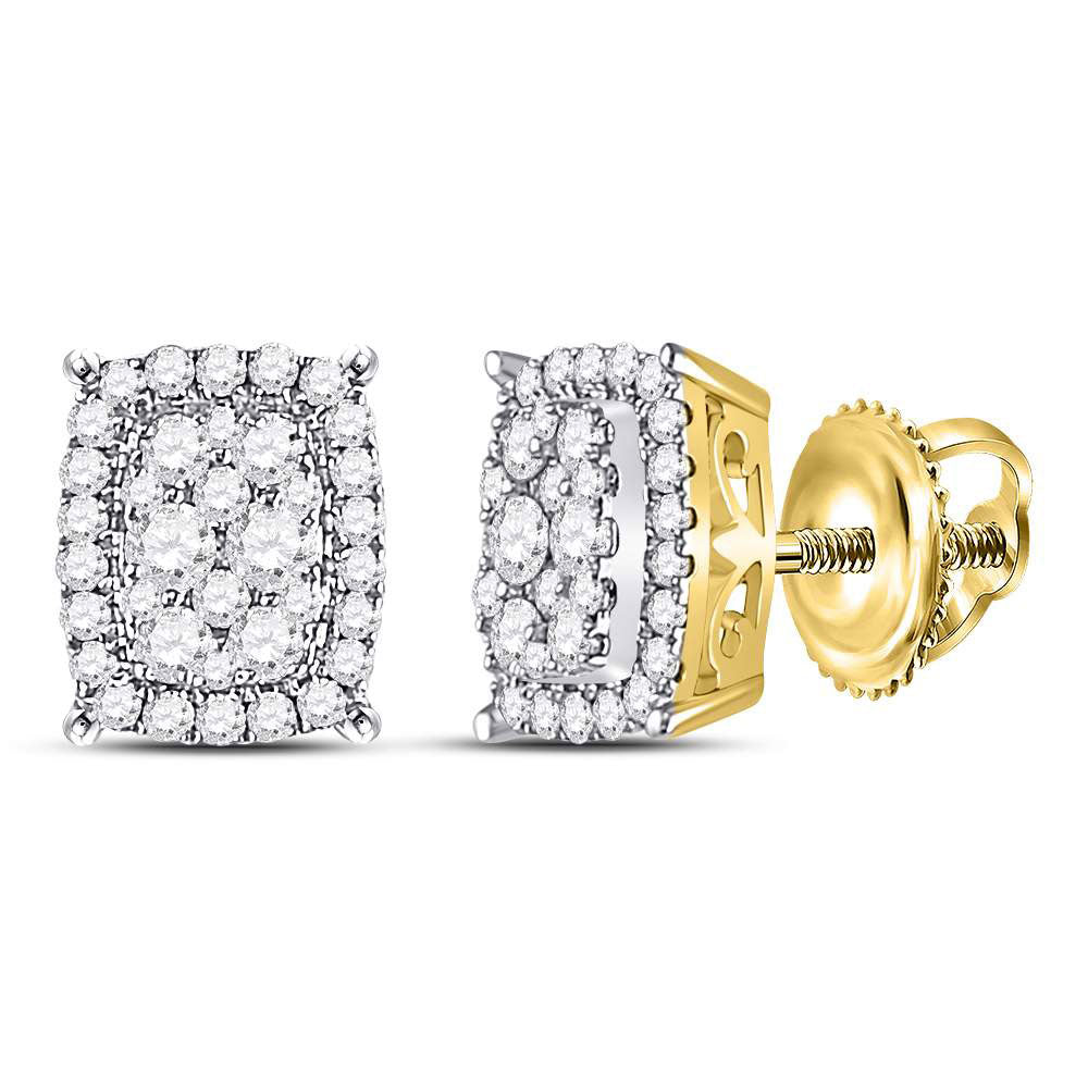 14kt Yellow Gold Womens Round Diamond Rectangular Cluster Earrings 1/2 Cttw