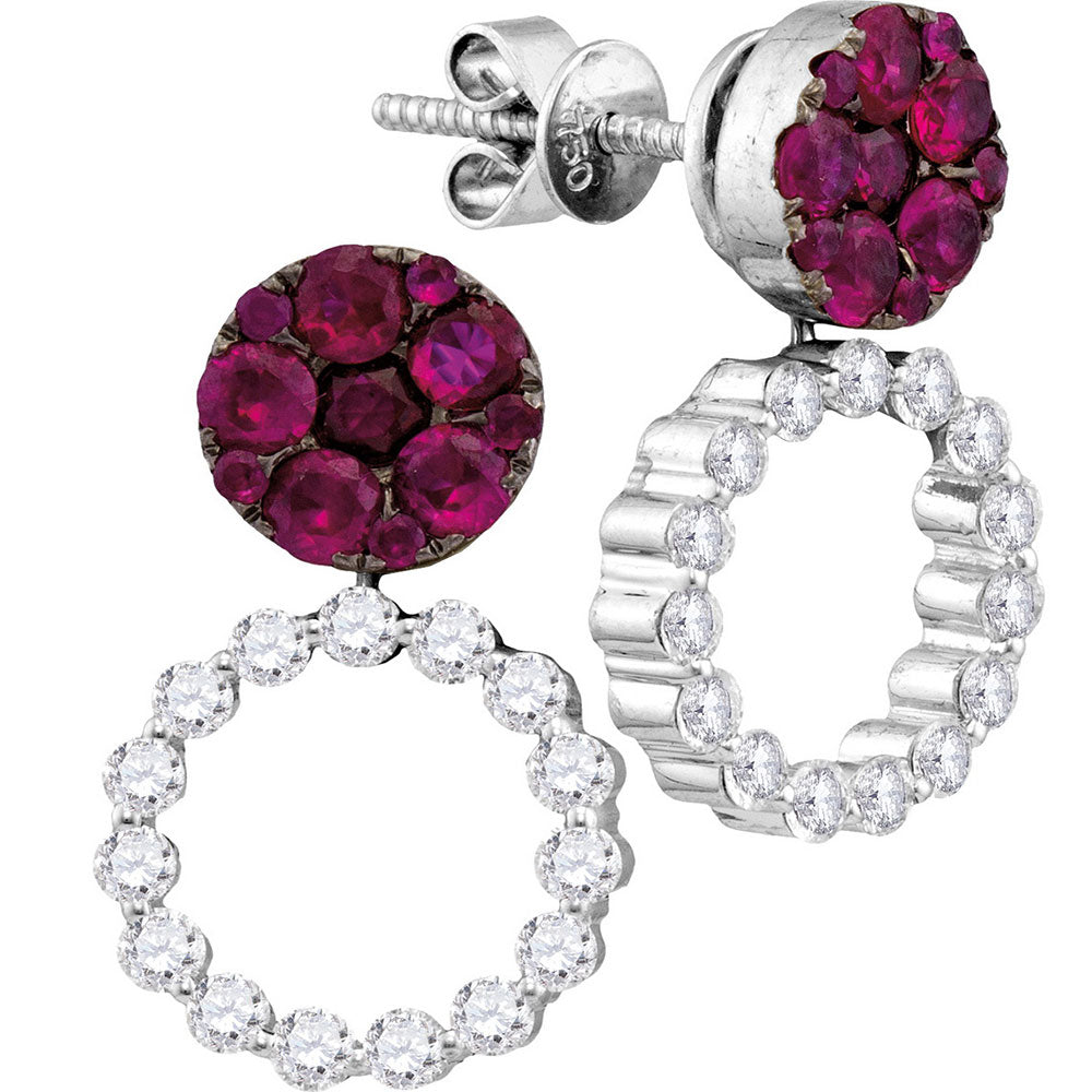 18kt White Gold Womens Round Ruby Diamond Convertible Dangle Earrings 2-1/4 Cttw