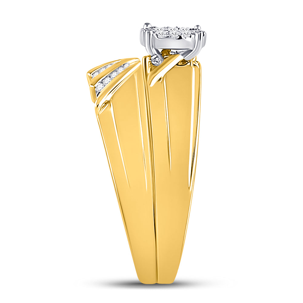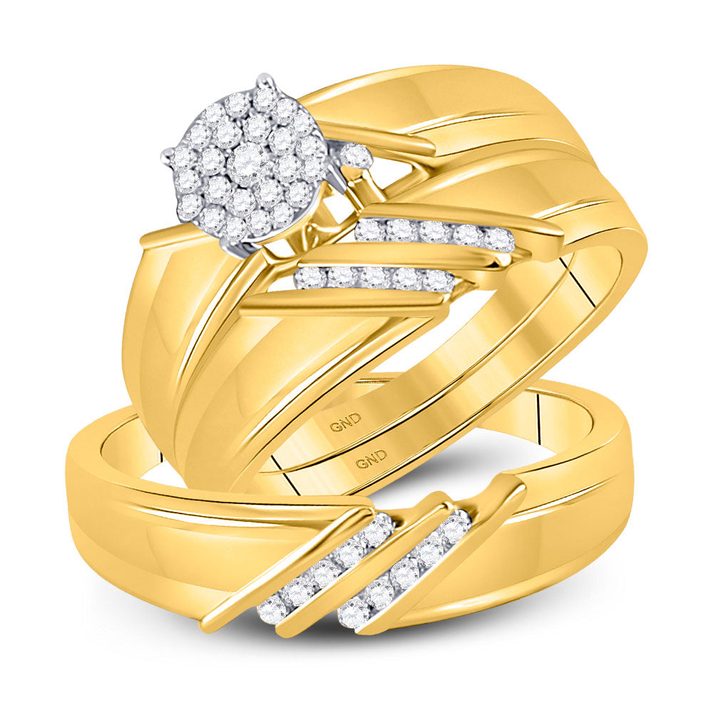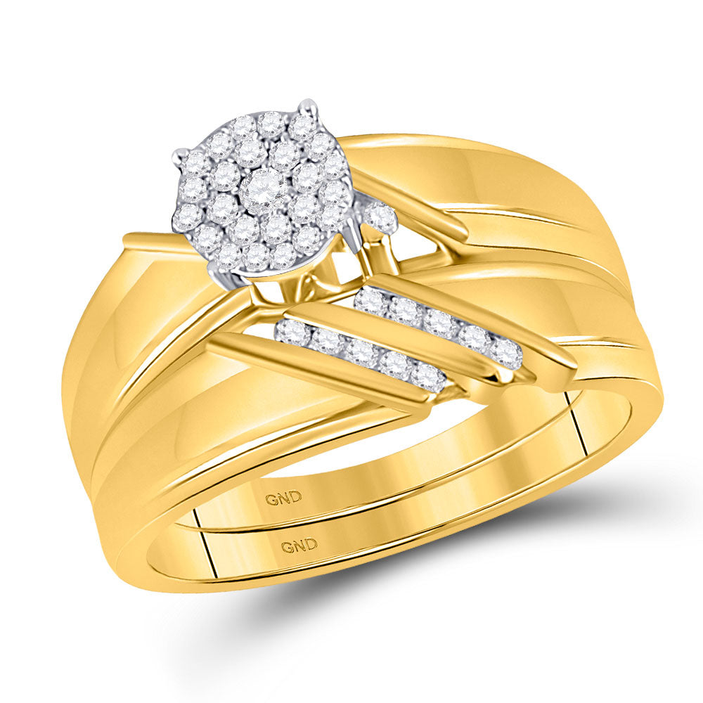 10kt Yellow Gold His Hers Round Diamond Cluster Matching Wedding Set 1/3 Cttw