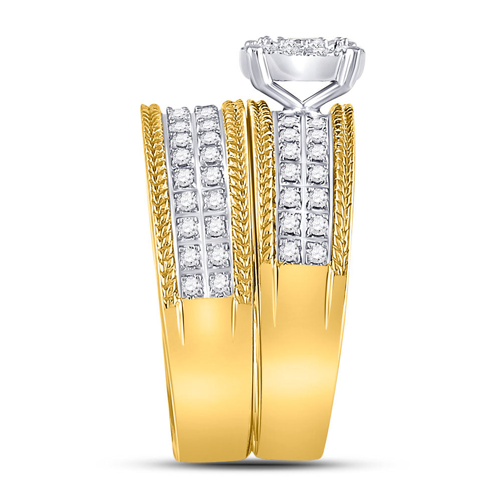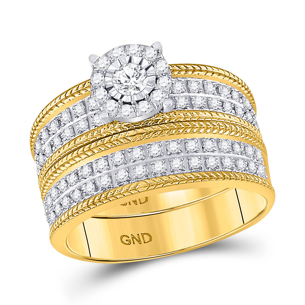 10kt Yellow Gold His Hers Round Diamond Solitaire Matching Wedding Set 7/8 Cttw