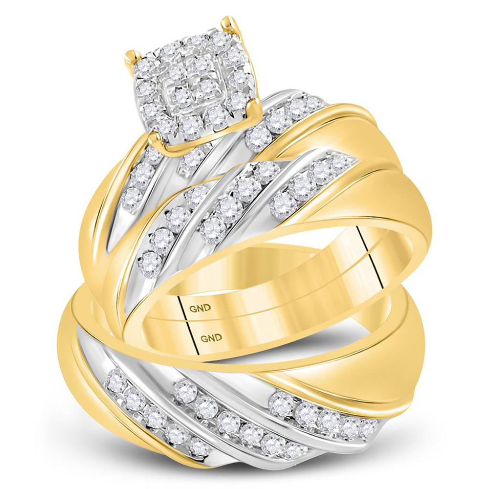 14kt Two-tone Gold His Hers Round Diamond Cluster Matching Wedding Set 1 Cttw