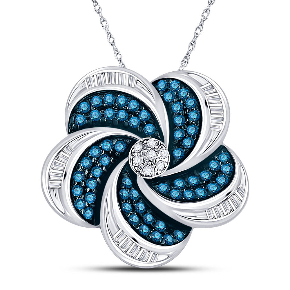 10kt White Gold Womens Round Blue Color Enhanced Diamond Pinwheel Cluster Pendant 1/2 Cttw