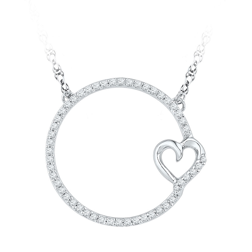 10kt White Gold Womens Round Diamond Circle Heart Pendant Necklace 1/5 Cttw