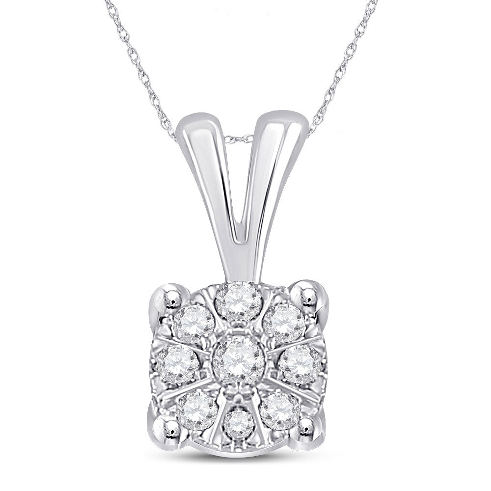 10kt White Gold Womens Round Diamond Cluster Pendant 1/12 Cttw