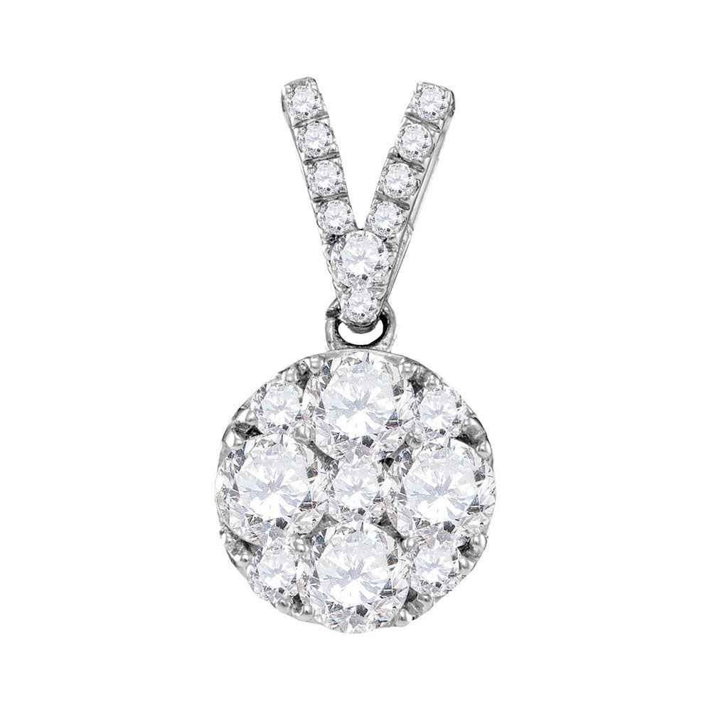10kt White Gold Womens Round Diamond Cluster Pendant 1 Cttw