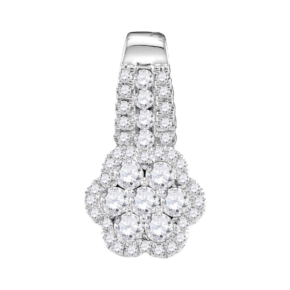 10kt White Gold Womens Round Diamond Cluster Slider Pendant 1/2 Cttw